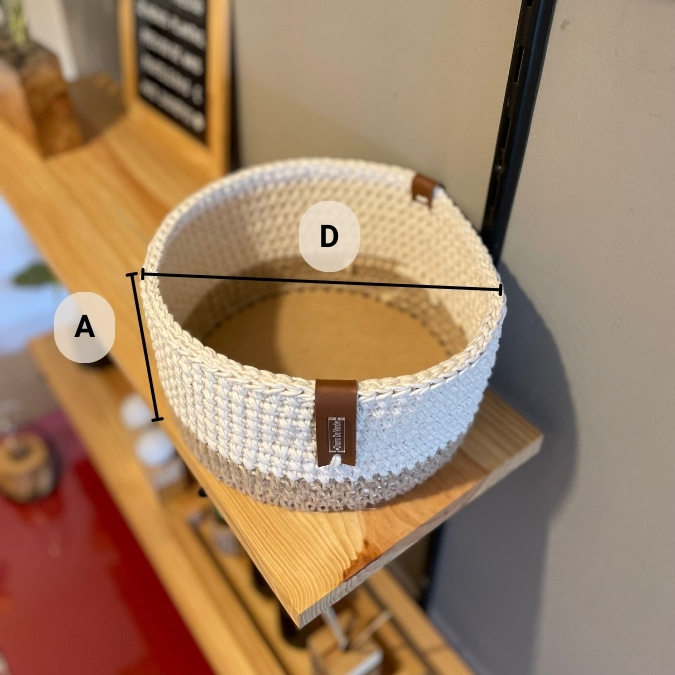 Brinde: pratinho de plástico reciclado de 24 cm de diâmetro para proteger o fundo do cesto.