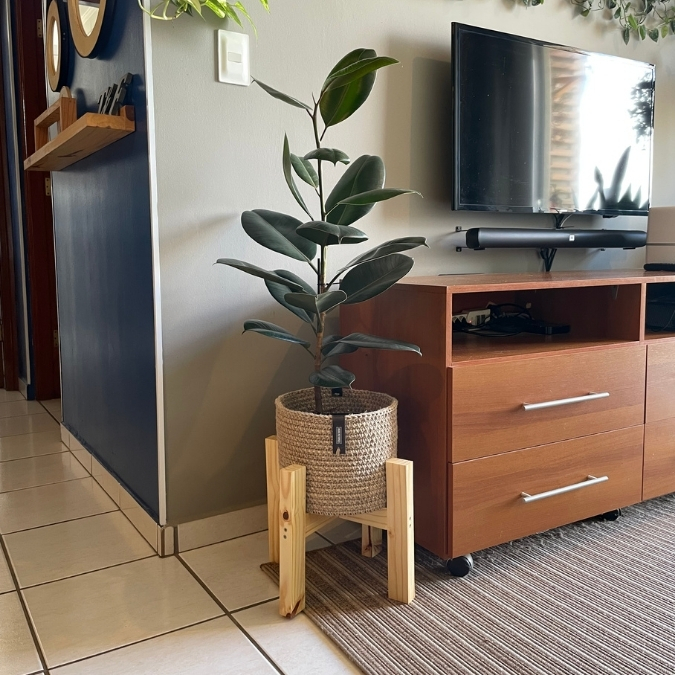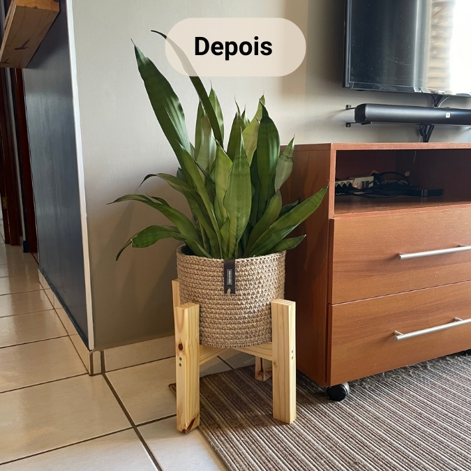Transforme o seu lar com o poder das plantas e o design original do nosso cachepô de fibras naturais com suporte de madeira